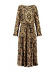This long snake print dress features a flattering V-neckline with stylish buttons and practical side pockets. Designed for versatility, it can be worn with or without the included belt, allowing you to effortlessly switch between a defined waist or a relaxed silhouette. Perfect for making a chic statement in any setting.