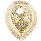 Embrace bold style with the Rough Rider | Black shawl. Featuring a fierce panther in leather biker gear and silver studs, this statement piece exudes attitude. Two motorcycles adorned with the Katherina Loretta logo add unique detail. Finished with black faux leather fringe and zigzag trim, it combines edgy design with sophisticated craftsmanship—a perfect accessory for fashion-forward riders.