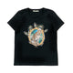 Black t-shirt with unique design print from katherina Loretta. 95% cotton/5% elastane