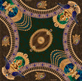 This unique design is a statement Katherina Loretta accessory. Gaya brown,blue,gold printed triangle XL scarf has been designed in the Netherlands completed with fringes along the edges. It keeps you nice and warm during chilly days and evenings.