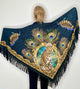 The XL-scarf Laila features a stunning floral design inspired by a Chinese vase, complemented by two elegant panthers and a graceful crane against a rich green background. Crafted from a soft blend of 96% lycra and 4% elastane, it offers both comfort and stretch. Finished with luxurious artificial fringe and a chic zigzag trim, this scarf adds a sophisticated and bold touch to any outfit.