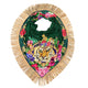Wrap yourself in autumn warmth with this stunning XL shawl, featuring a captivating zigzag design that showcases a different print in each layer. Rich, seasonal hues blend seamlessly across the fabric, creating depth and visual interest. The shawl is finished with an army green artificial fringe and coordinating zigzag trim that adds a modern edge to this timeless accessory. Perfect for layering over any outfit, this versatile piece transitions effortlessly from day to evening wear.